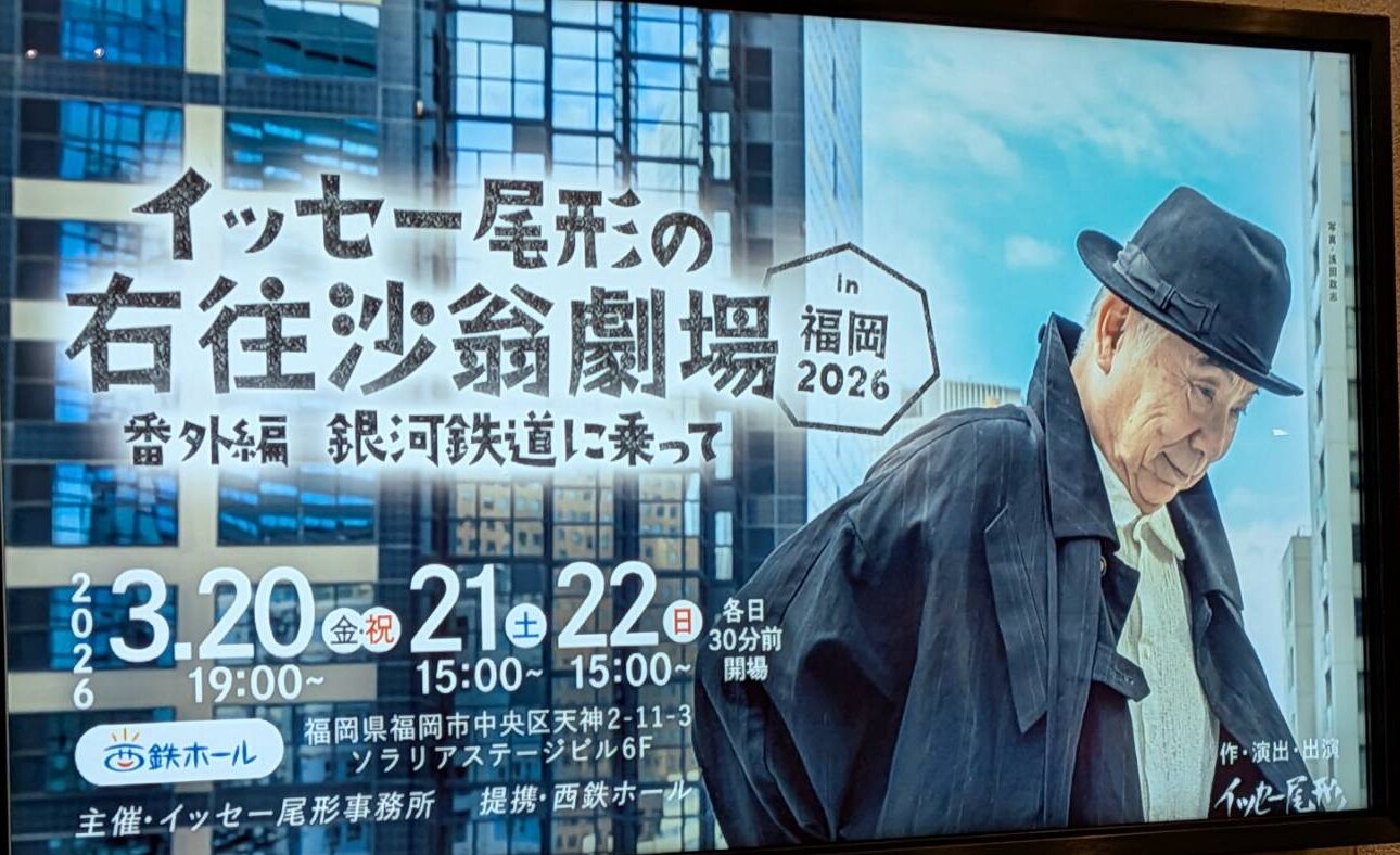 日頃は土日祝日の街中になど出かけるものではない、という考えではあるのだけれど。かねてより一度は生で見ておきたい舞台のリストに永らく載ったままずっと機会を逸していたイッセー尾形。気がついたのが公演1週間前だったからさすがにムリだろと思いきや、どうしたことか席が確保できてしまったからには主義を曲げて出かけて行く天神。