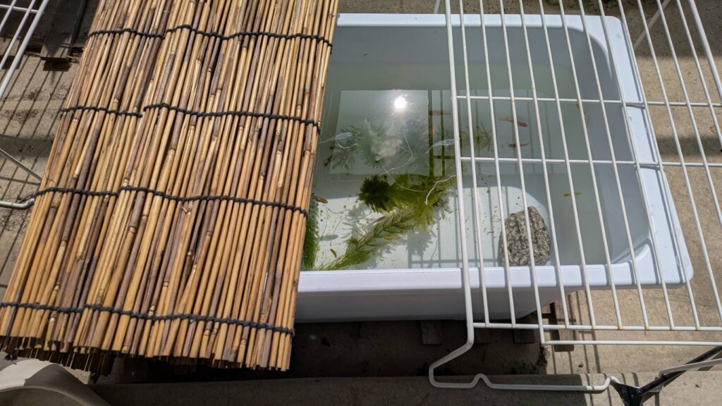 なきゃないで何とかなりそうだとは思いつつ結局買ってきた掬い網は、あって本当に楽だった。特に第3世代の小さい方はちょこまかしてコップでは捕まらない。古い方の水槽は予備においておくとして、懸念しているのは水槽よりも冬の寒気対策で水槽ごと入れて使っていた発砲スチロールの保管場所。真夏は真夏でまた温度調整に使おうとは思うけど。