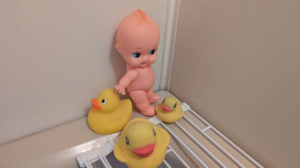 ということでうちの浴室についてはキューピー&アヒル3ピース体制のまま、新メンバー参入はなし。ちなみにキューピーとアヒルまつ毛なしが調布借家時代からのオリジナルメンバー。二拠点暮らしで福岡にて別途結成したまつ毛親子と合流合体して現在に至る。